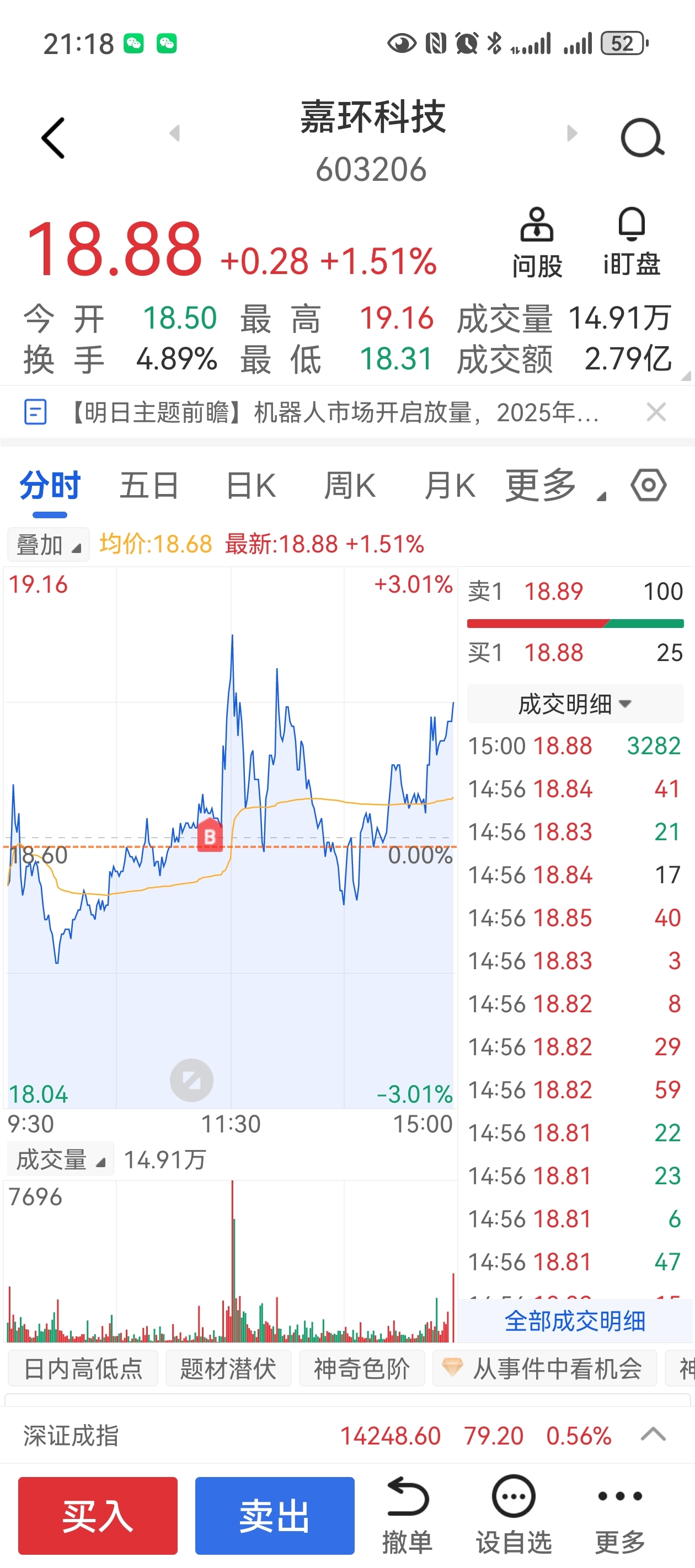 $嘉环科技(SH603206)$ 一手就给买起来了
