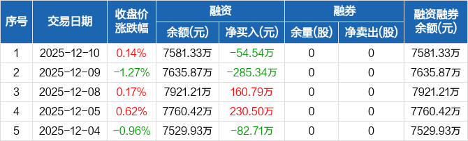 小方制药:融资净偿还54.54万元,融资余额7581.33万元(12-10)