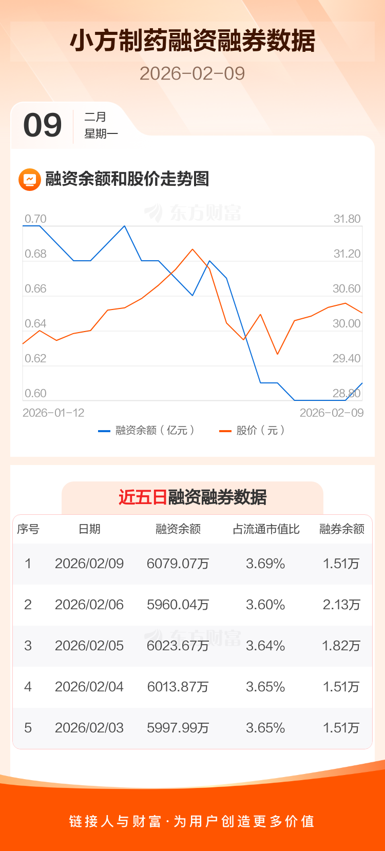 交易所最新数据显示,小方制药于2026年2月9日获融资买入355.58万元,融资偿还236.55万元,当日融资净买入119.03万元。目前,该股融资余额6079.07万,占流通市值比例为3.69%。