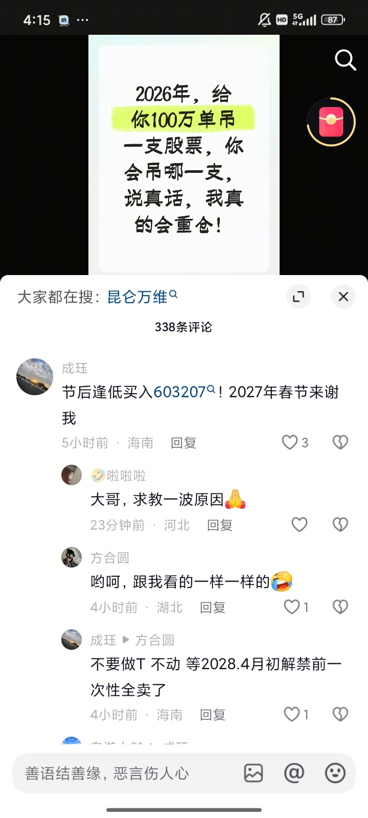温馨提示: 1.根据《证券法》规定,禁止编造、传播虚假信息或者误导性信息,扰乱证券市场;2.用户在本社区发表的所有资料、言论等仅代表个人观点,与本网站立场无关,不对您构成任何投资建议。用户应基于自己的独立判断,自行决定证券投资并承担相应风险。《东方财富社区管理规定》