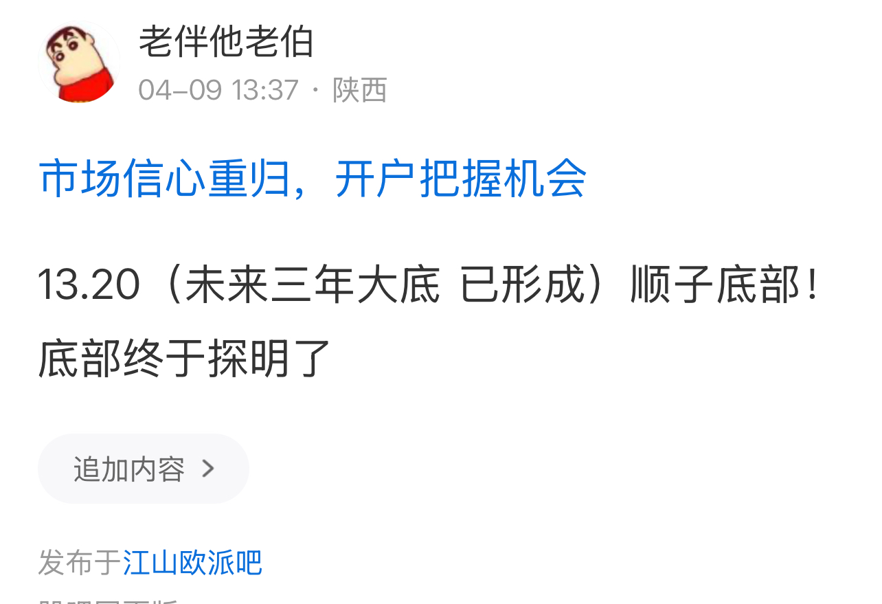 温馨提示: 1.根据《证券法》规定,禁止编造、传播虚假信息或者误导性信息,扰乱证券市场;2.用户在本社区发表的所有资料、言论等仅代表个人观点,与本网站立场无关,不对您构成任何投资建议。用户应基于自己的独立判断,自行决定证券投资并承担相应风险。《东方财富社区管理规定》