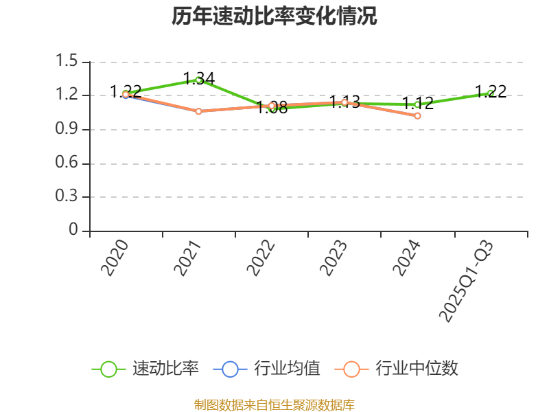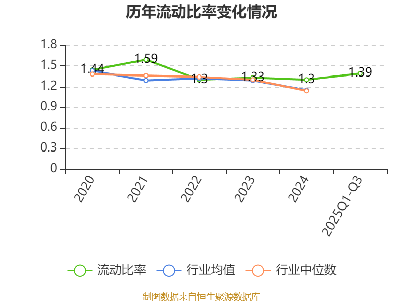2025年前三季度,公司流动比率为1.39,速动比率为1.22。