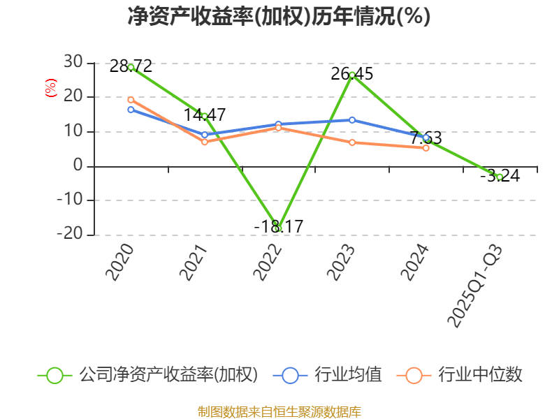 盈利能力方面, 2025年前三季度公司加权平均净资产收益率为-3.24%,同比下降14.06个百分点。公司2025年前三季度投入资本回报率为-1.06%,较上年同期下降8.98个百分点。