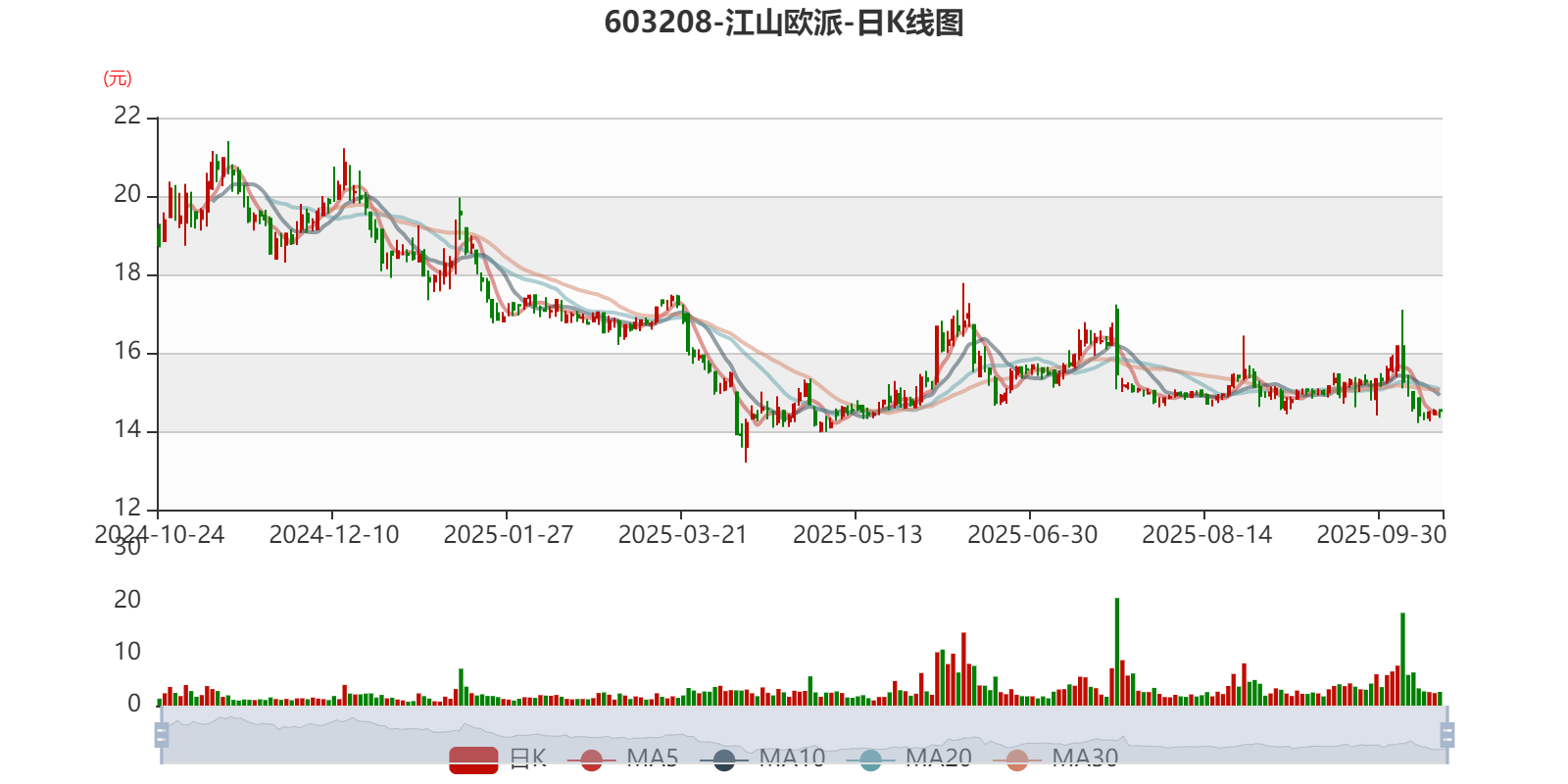 以10月23日收盘价计算,江山欧派目前市盈率(TTM)约为-26.74倍,市净率(LF)约2.08倍,市销率(TTM)约1.27倍。