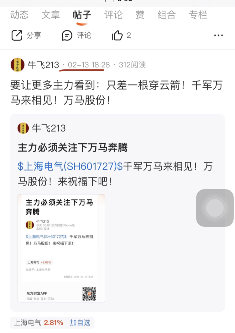 温馨提示: 1.根据《证券法》规定,禁止编造、传播虚假信息或者误导性信息,扰乱证券市场;2.用户在本社区发表的所有资料、言论等仅代表个人观点,与本网站立场无关,不对您构成任何投资建议。用户应基于自己的独立判断,自行决定证券投资并承担相应风险。《东方财富社区管理规定》