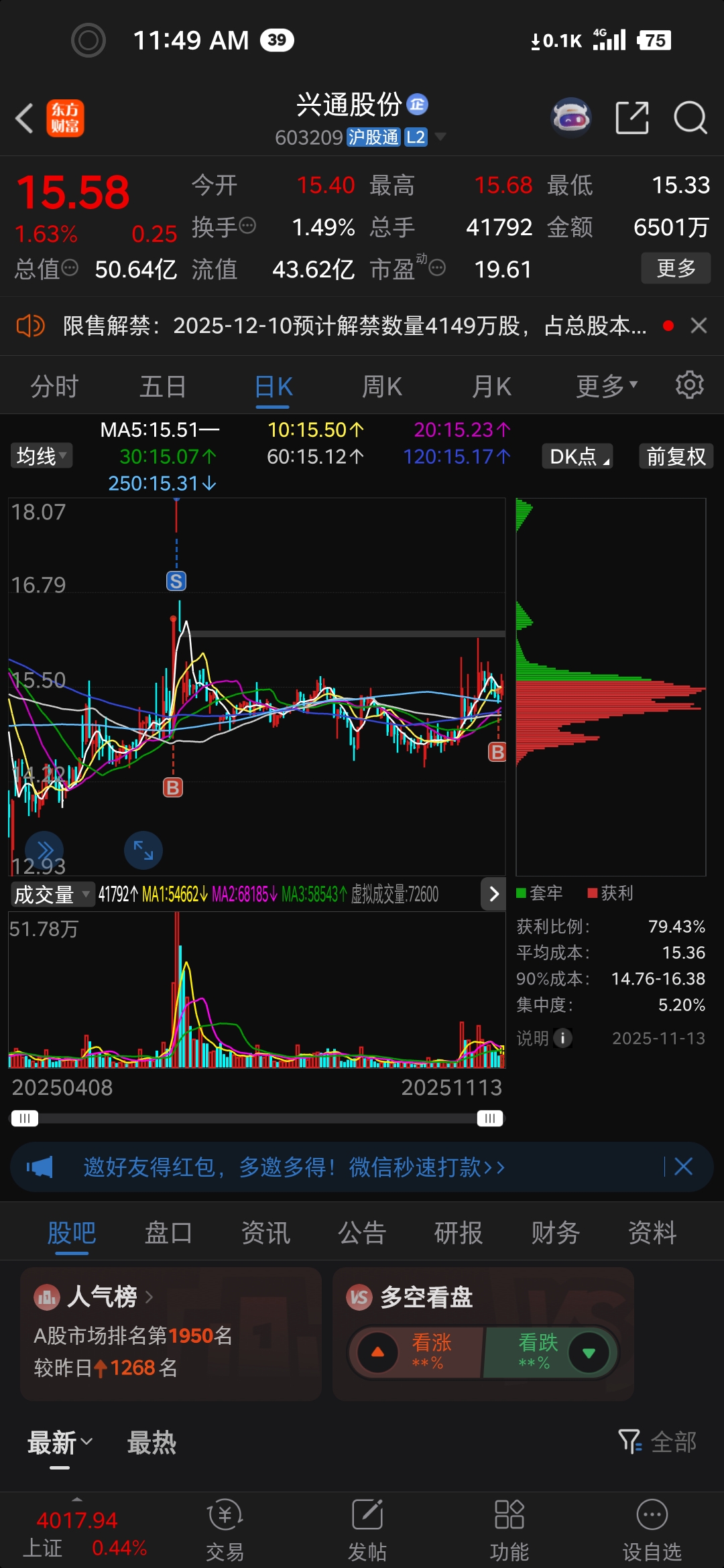 $兴通股份(SH603209)$ 上次吃了一个板,调整到现在,调整充分,又进来试试水