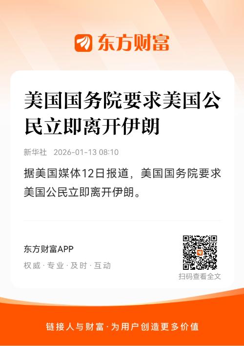 新华社华盛顿1月12日电 据美国媒体12日报道,美国国务院要求美国公民立即离开伊朗。
