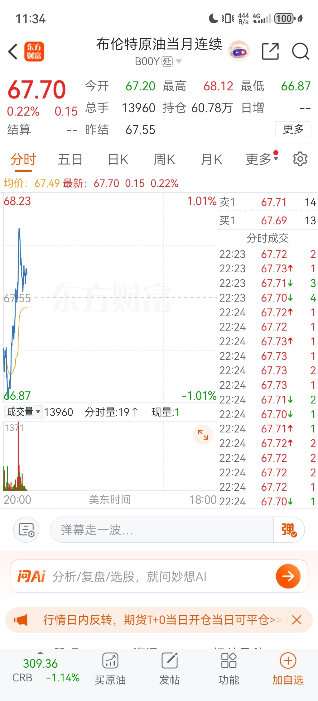 $兴通股份(SH603209)$ 这公司业务就是运油的,走势完全照着原油来的,2月2日的周一原油大跌4.34%,它也跌4.34%,今日分时图更是完全跟着原油来的,几乎一模一样!