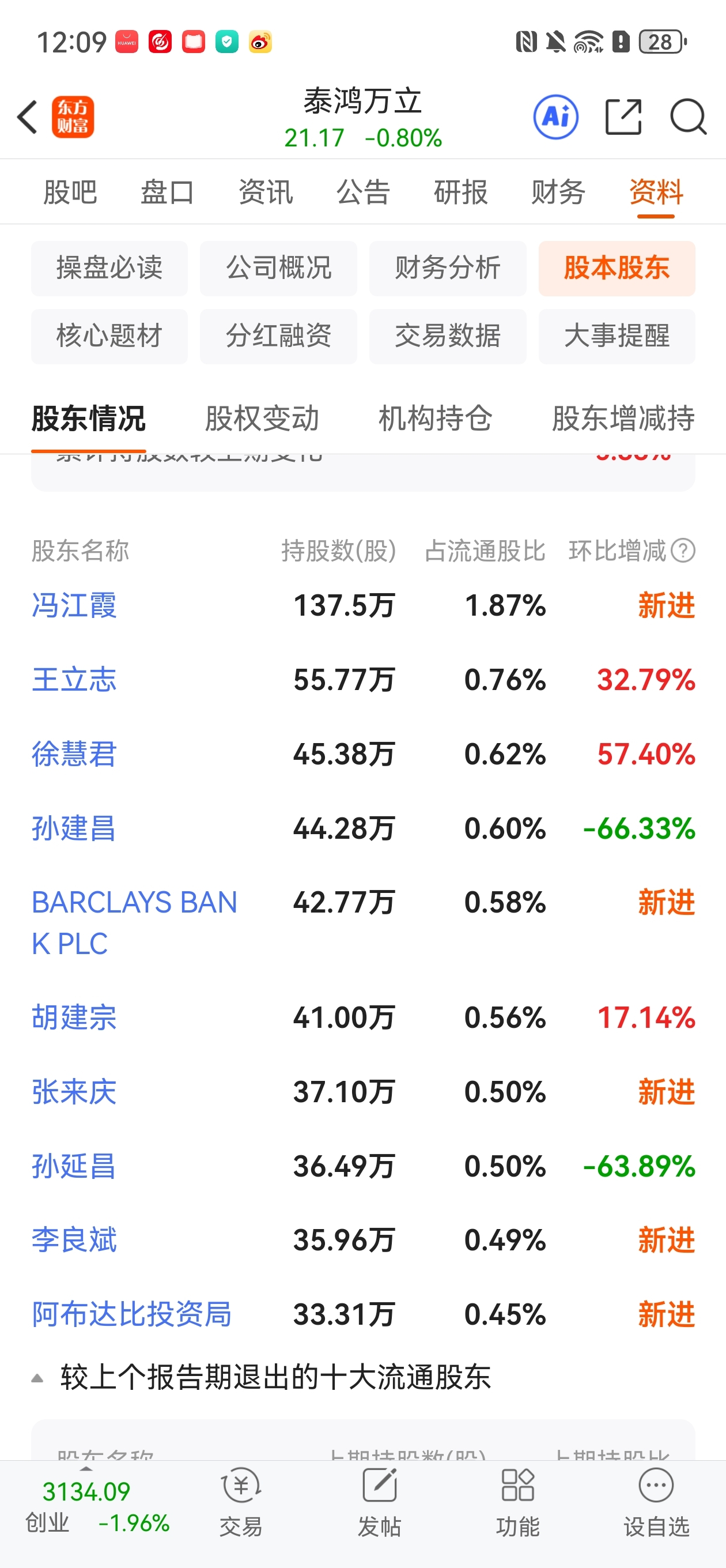 $泰鸿万立(SH603210)$ 流通股7000多万股,最大的流通股东才100多万股,散户韭菜俱乐部一点戏没有