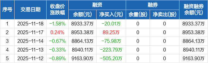 泰鸿万立:融资净偿还20.01万元,融资余额8933.37万元(11-18)