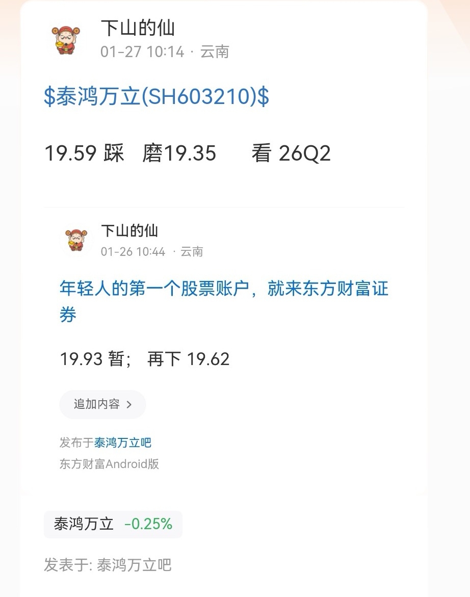 温馨提示: 1.根据《证券法》规定,禁止编造、传播虚假信息或者误导性信息,扰乱证券市场;2.用户在本社区发表的所有资料、言论等仅代表个人观点,与本网站立场无关,不对您构成任何投资建议。用户应基于自己的独立判断,自行决定证券投资并承担相应风险。《东方财富社区管理规定》