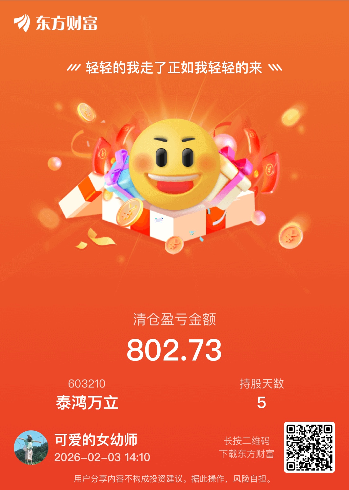 $泰鸿万立(SH603210)$ 走了,不会涨的货色