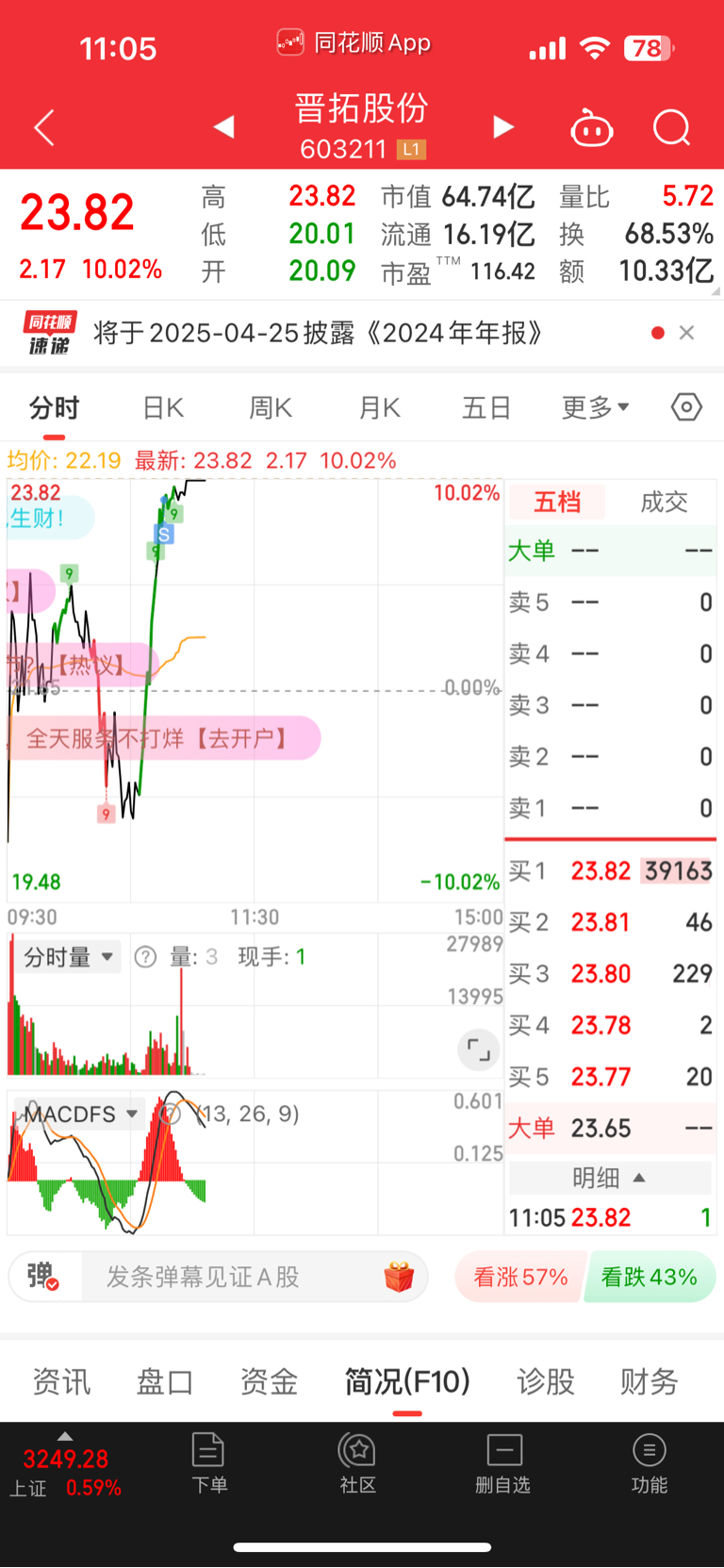 $晋拓股份(SH603211)$ 卖飞了……