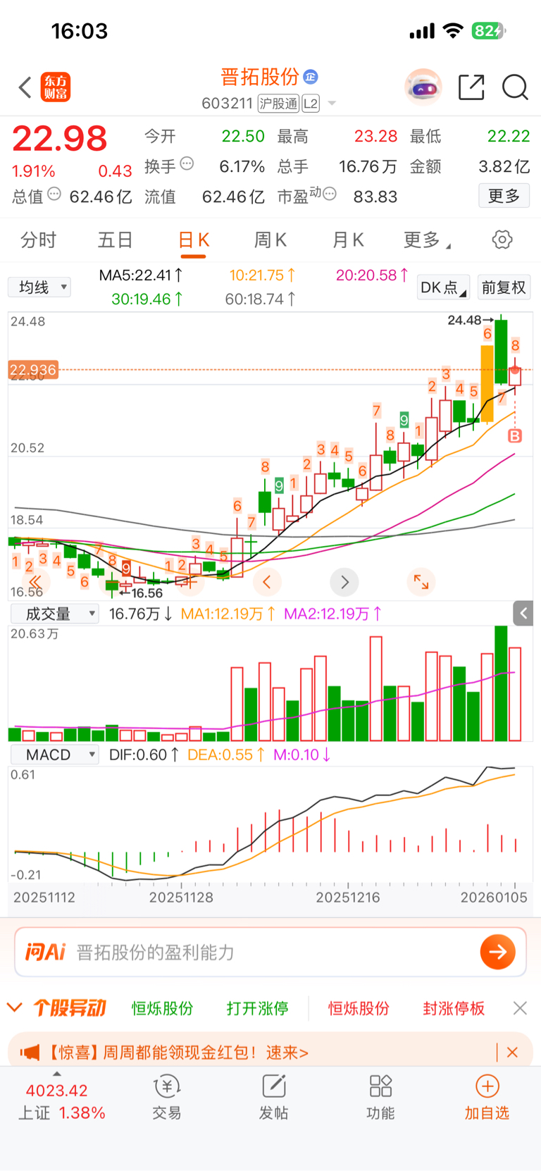 $晋拓股份(SH603211)$ 绿棒下面好乘凉