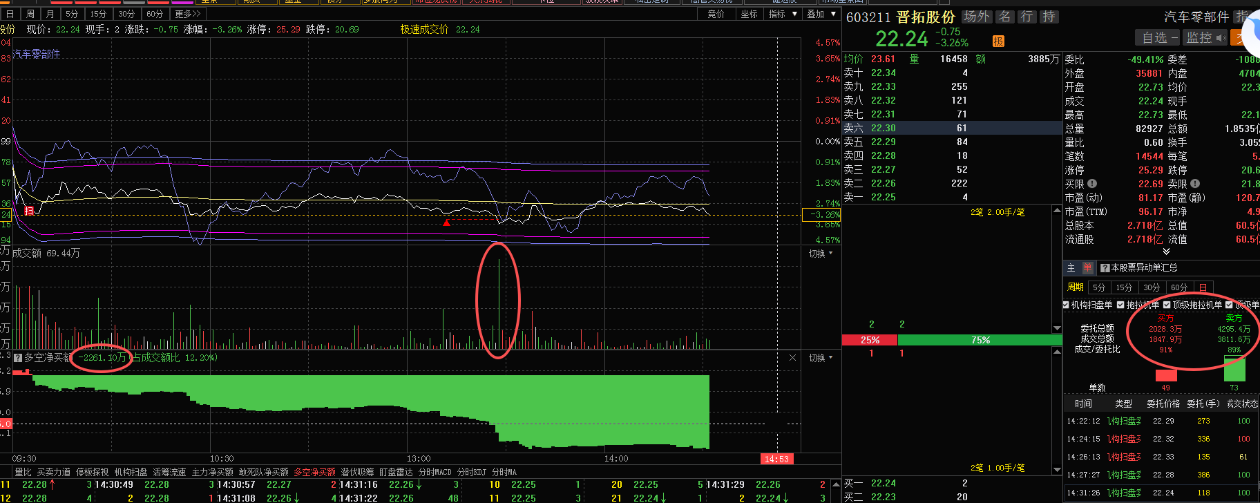 主力在高位跑了2300万,加上昨天跑的2800万,跑了5100万,机构跑了200