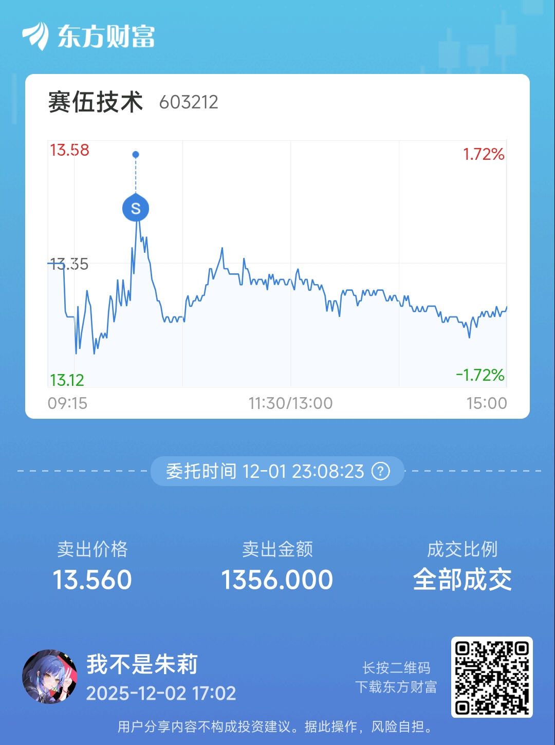 $赛伍技术(SH603212)$ 今天被我卖崩了,不好意思大家