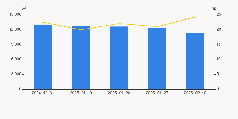 自2024年12月31日以来,公司股东户数连续4期下降,截至目前减幅为12.64%。2024年12月31日至2025年2月10日区间股价上涨7.67%。