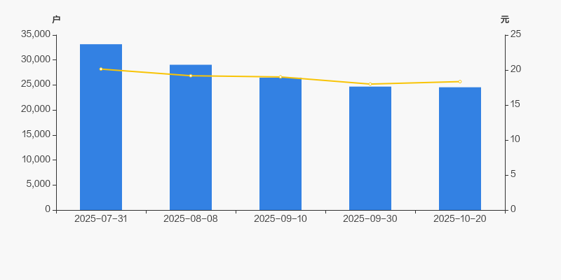 自2025年7月31日以来,公司股东户数连续4期下降,截至目前减幅为25.96%。2025年7月31日至2025年10月20日区间股价下降8.87%。