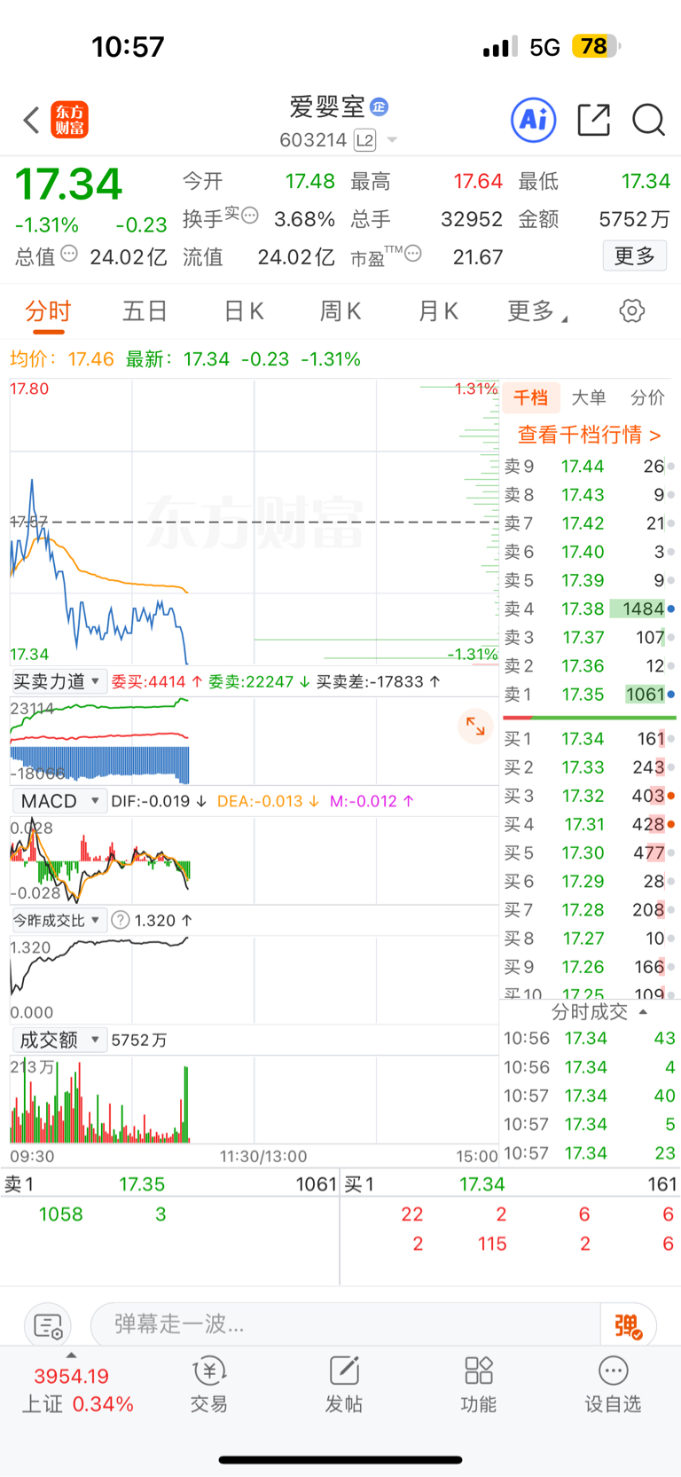 $爱婴室(SH603214)$ 今天这是什么意思,大单一直把股价往下压,但是又不直接卖掉