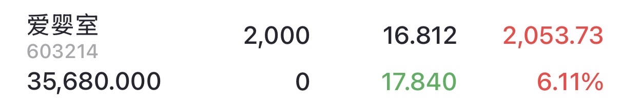 $爱婴室(SH603214)$ 最好就破我成本价,我把仓位加回来