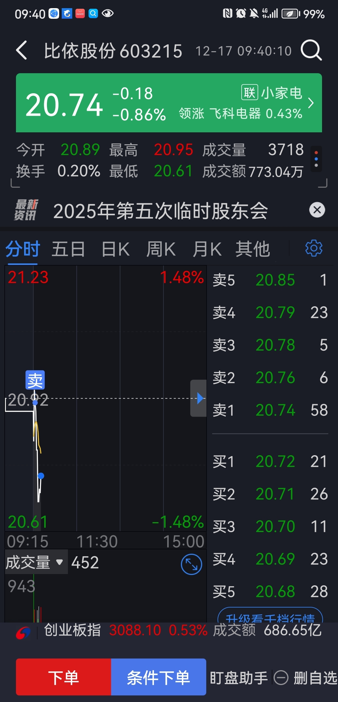 $比依股份(SH603215)$ 这行情,每天一万多,挣200多,可以了。