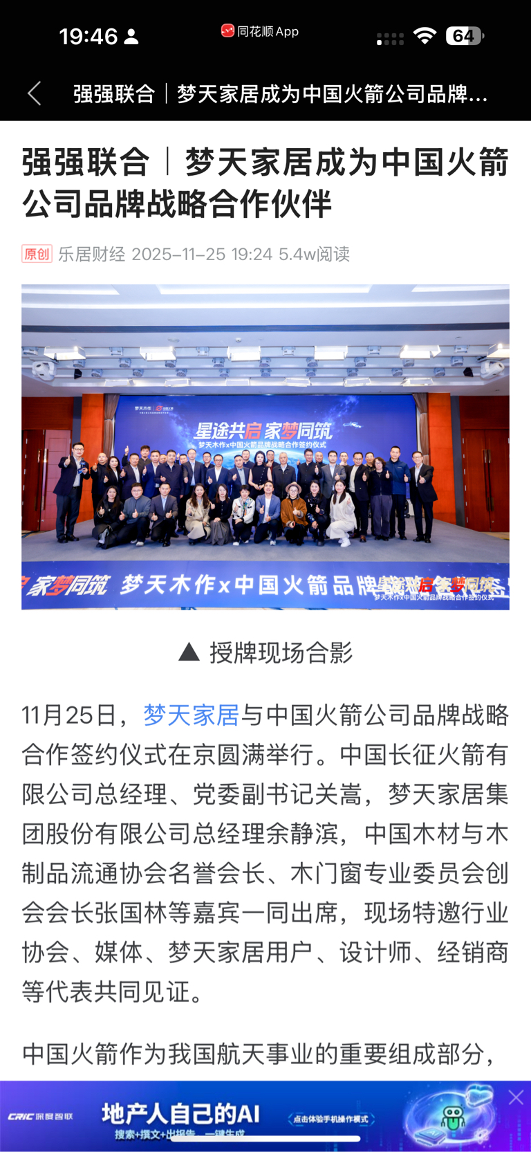 $梦天家居(SH603216)$ 新闻新闻出来了,和中国火箭签协议了