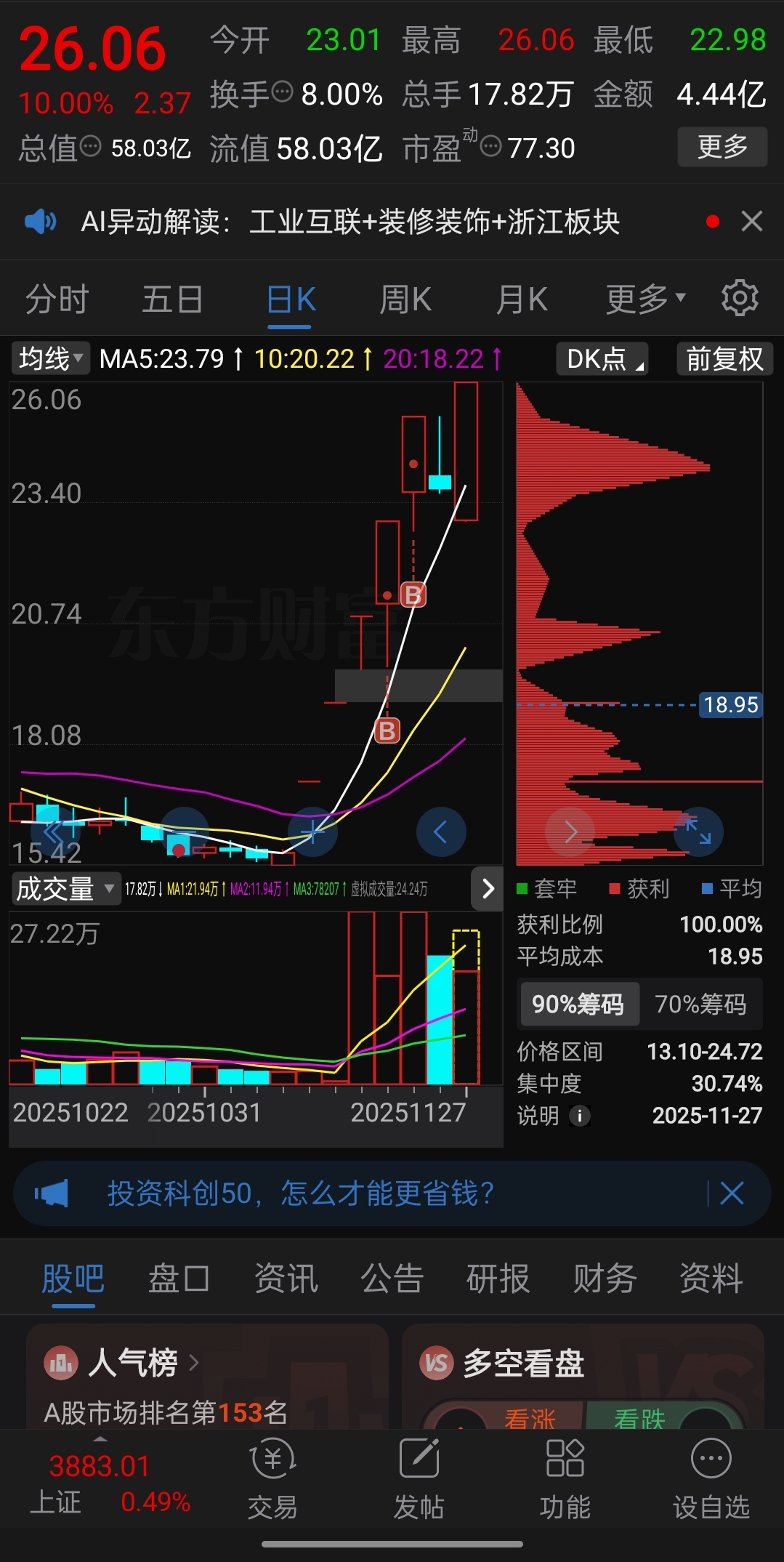 $梦天家居(SH603216)$ 这个票人气能不能到50名