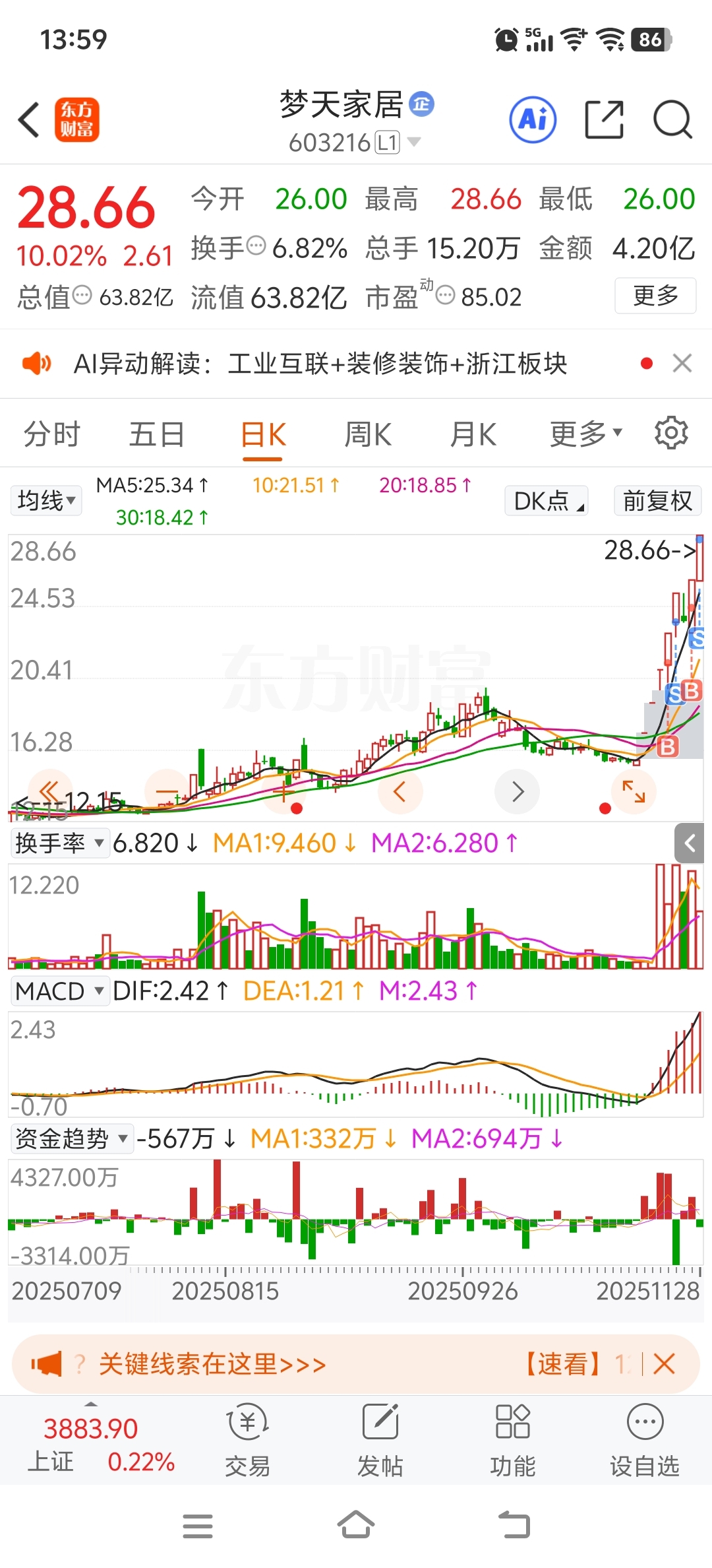 $梦天家居(SH603216)$ 这封单量还是有点怂,缩量了这么点封单明天不可能一字吧!