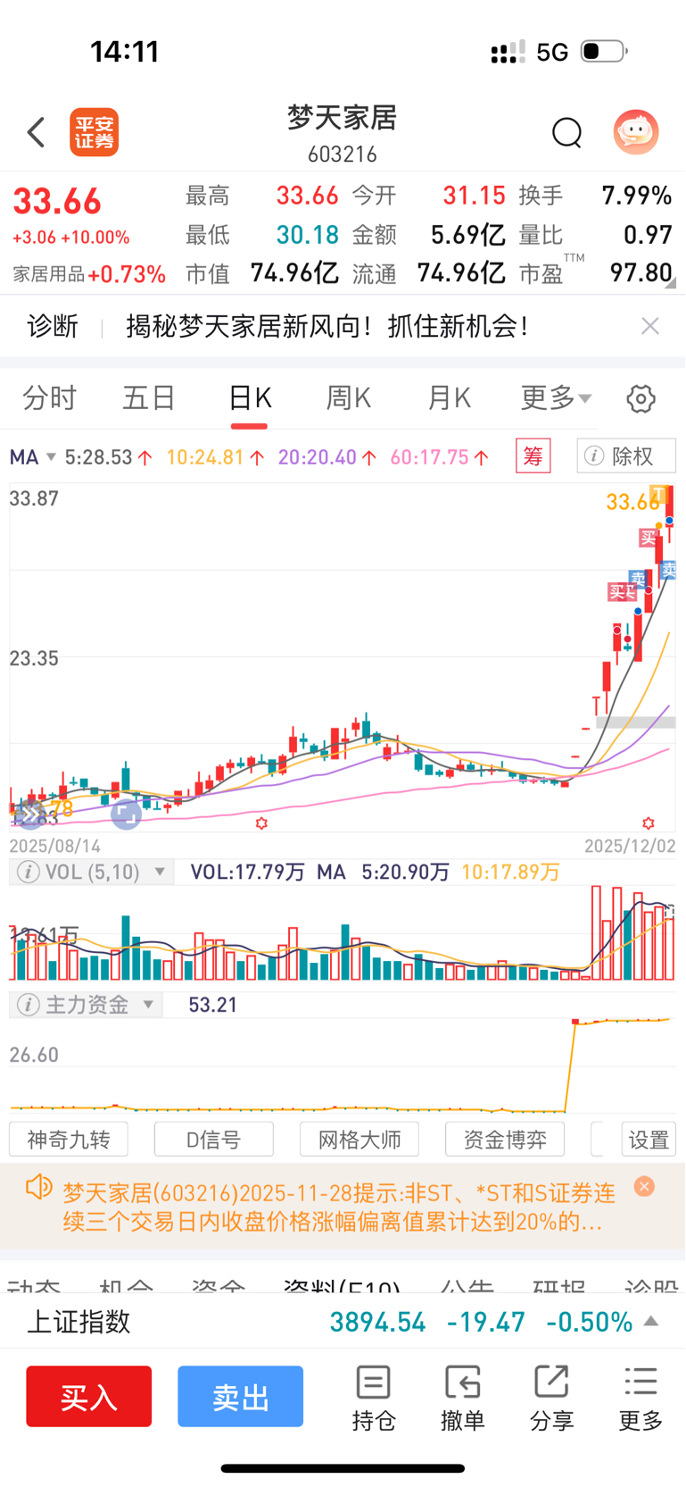 $梦天家居(SH603216)$ 奶奶的本不想带手机的,就怕手痒,害怕的事还是发生了