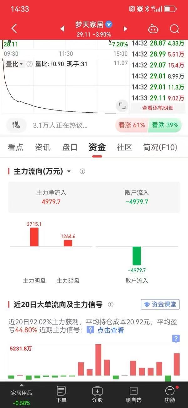 $梦天家居(SH603216)$ 明盘暗盘都流入,主力也被套住了。今天大盘不行啊。