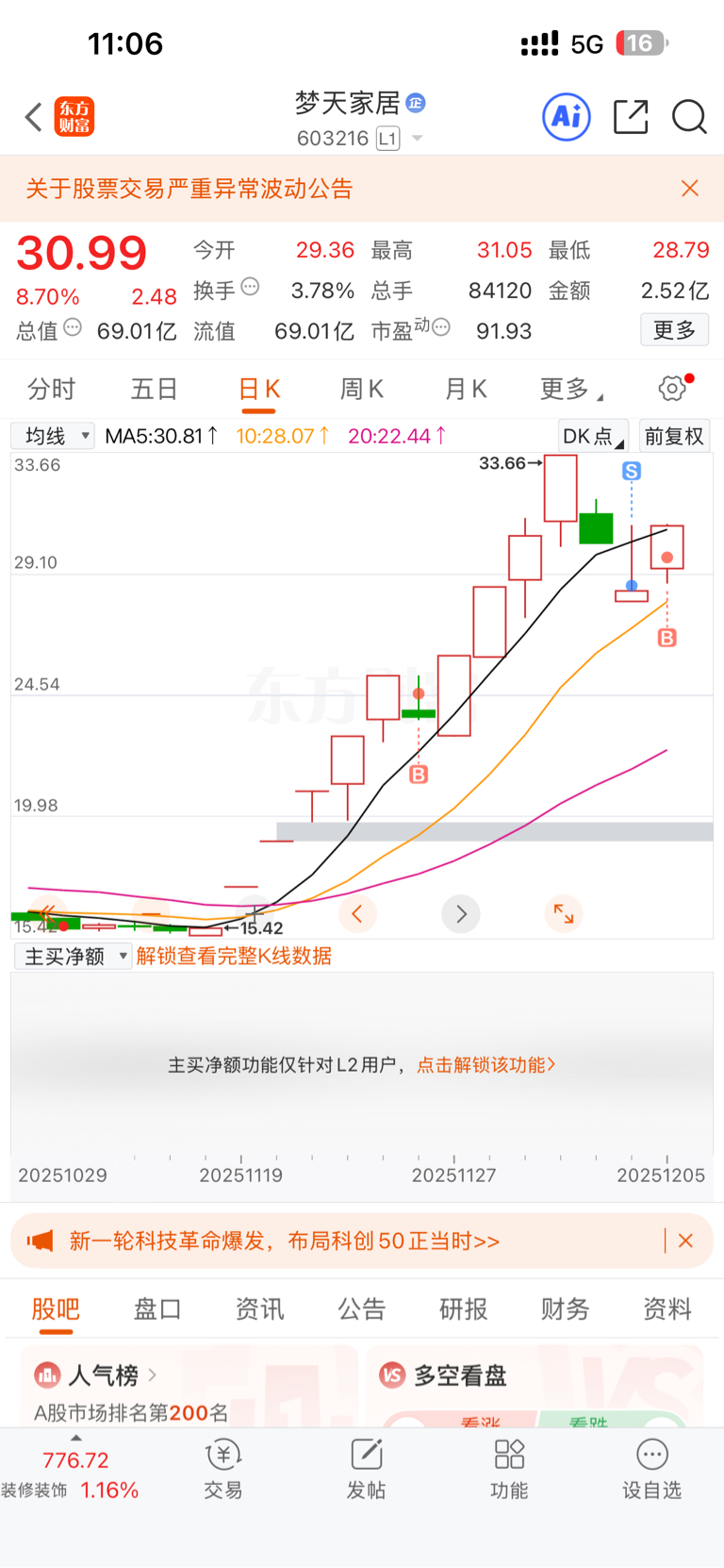$梦天家居(SH603216)$ 兄弟们我又回来了