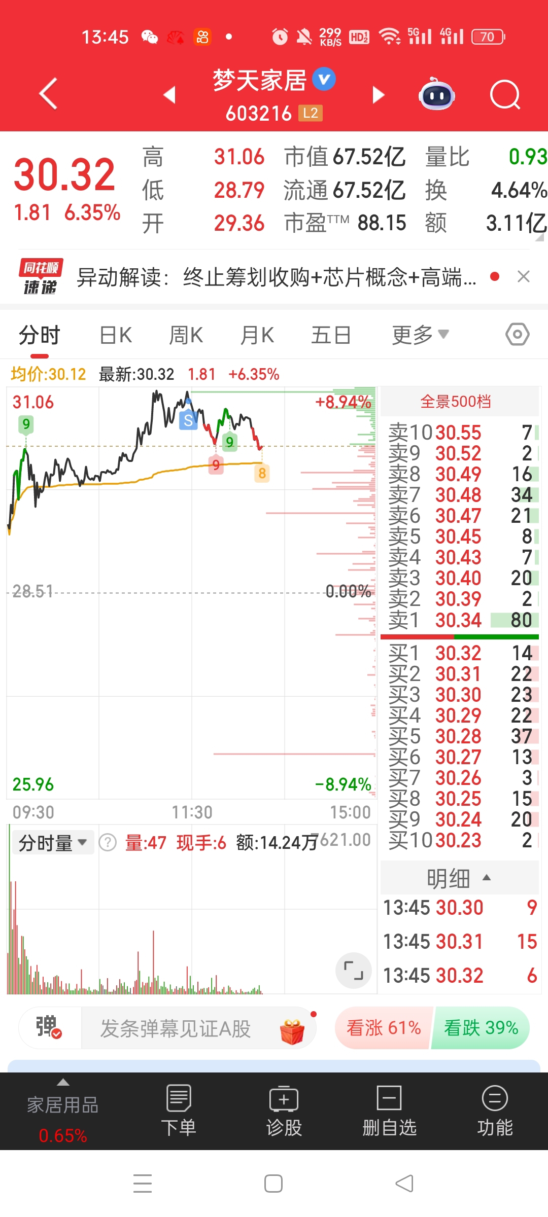 $梦天家居(SH603216)$ 昨天博一个反抽,小盈利9个点出了,