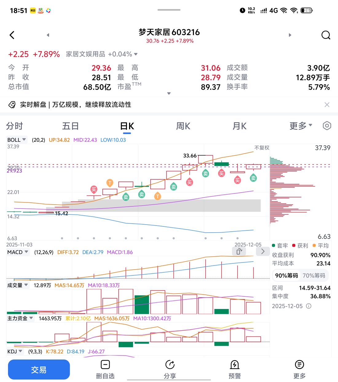 $梦天家居(SH603216)$ 还是很值的,看看筹码峰20~30是建仓期!
