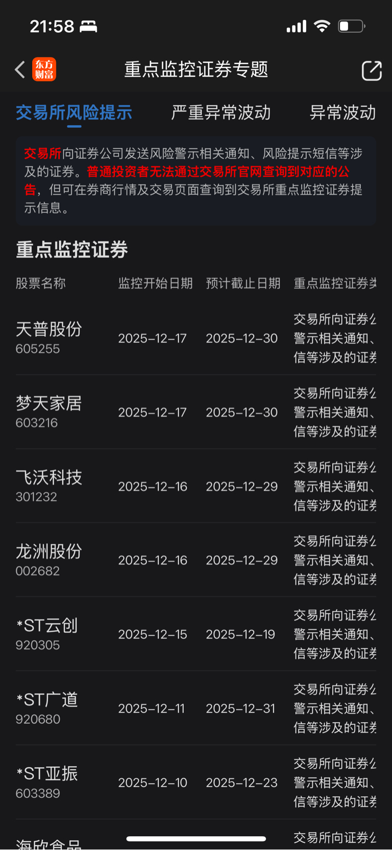 $梦天家居(SH603216)$ 搞不懂风险提示股票明天怎么走,看一下历史记录就行了,从目前来看,除了龙洲股份跌停了,其余都是向上走的,而龙洲股份主要是他同时列入了重点异动名单