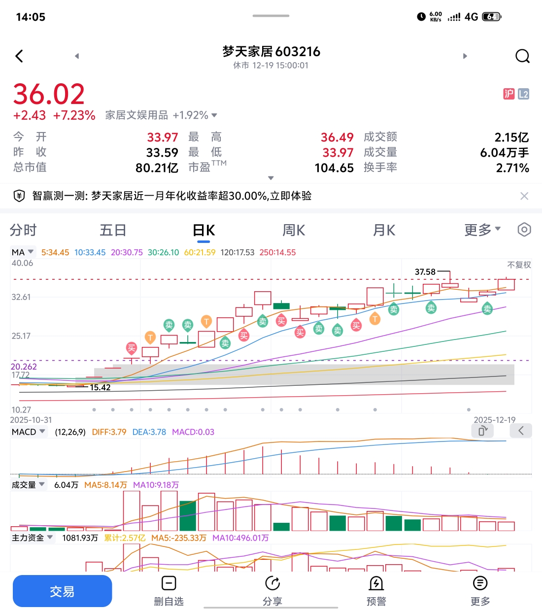 $梦天家居(SH603216)$ 主力控盘太明显了,要不是为了补自己的最爱,真不愿减仓,留了点利润持股等着看底牌。