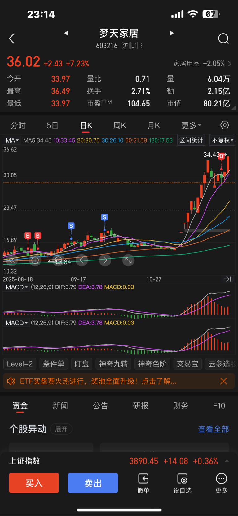 $梦天家居(SH603216)$ 我才叫踏空,心里的苦,