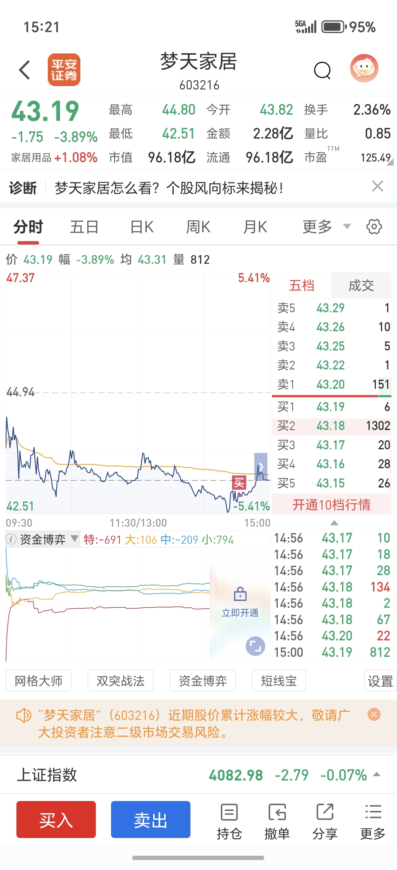 $梦天家居(SH603216)$ 尾盘再入一手,燃尽了,后面真没钱补仓了