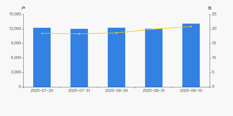 2025年7月20日至今,公司股东户数有所增长,区间涨幅为6.98%。2025年7月20日至2025年9月10日区间股价上涨12.76%。