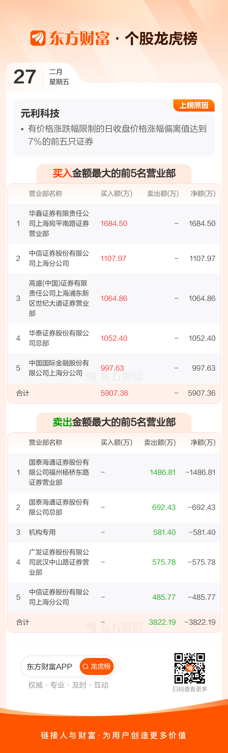 元利科技(603217)龙虎榜数据(02-27)