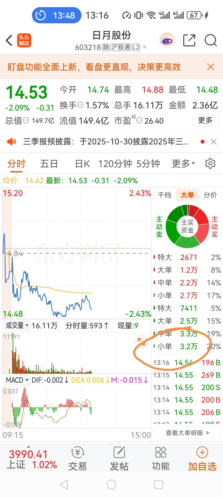 $日月股份(SH603218)$ 疯狂小单出货,看不懂吗?