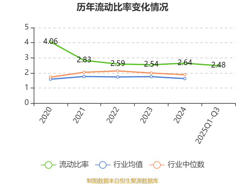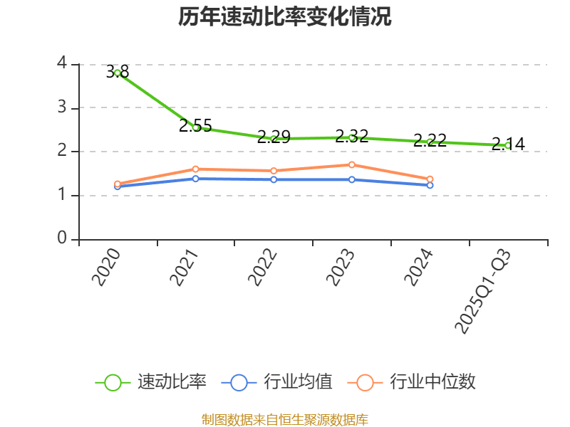2025年前三季度,公司流动比率为2.48,速动比率为2.14。