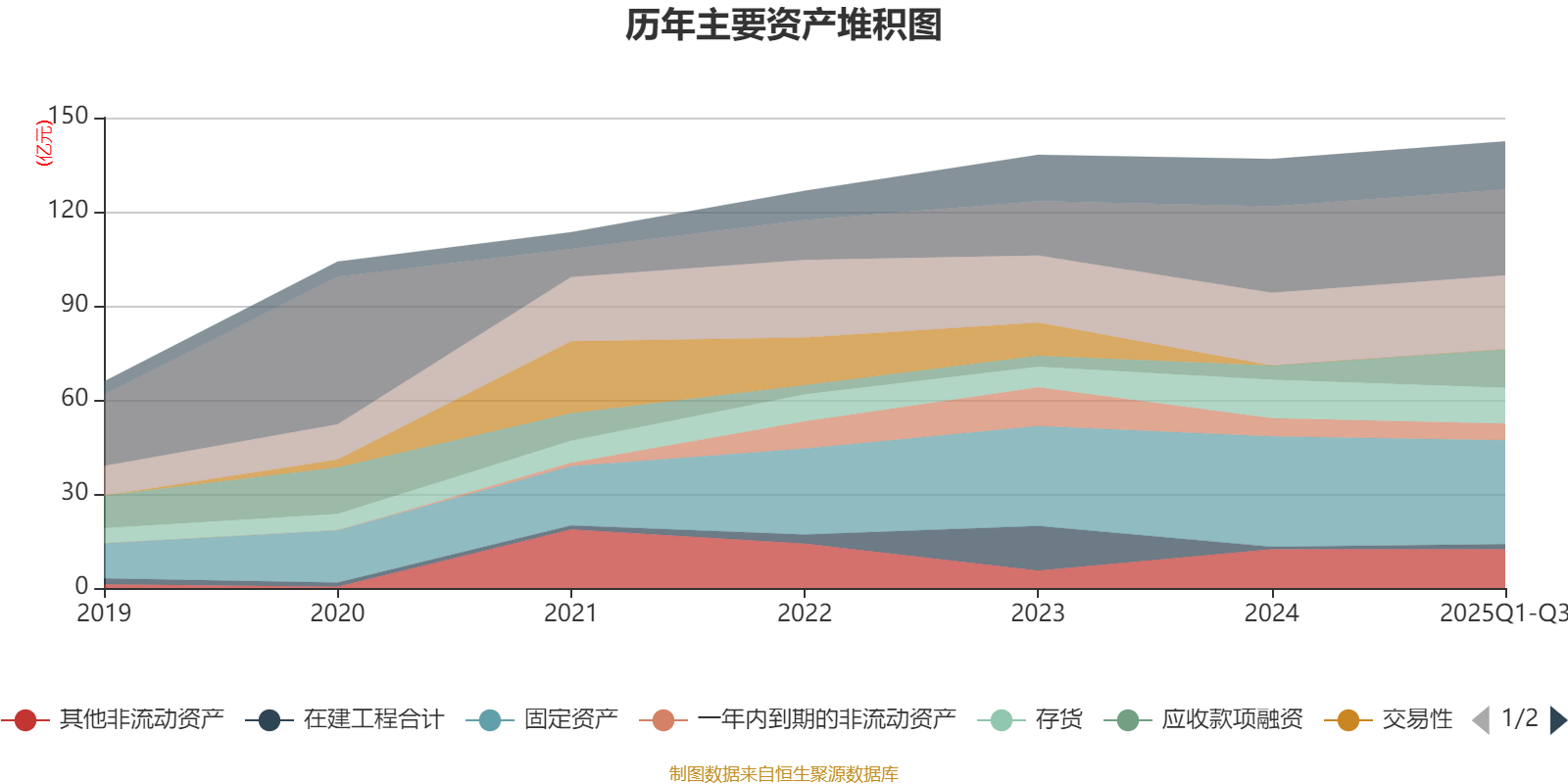 资产重大变化方面,截至2025年三季度末,公司应收款项融资较上年末增加172.94%,占公司总资产比重上升5.35个百分点;固定资产较上年末减少5.78%,占公司总资产比重下降2.45个百分点;存货较上年末减少7.06%,占公司总资产比重下降0.96个百分点;货币资金较上年末减少0.3%,占公司总资产比重下降0.86个百分点。