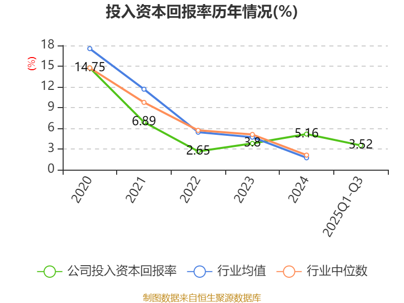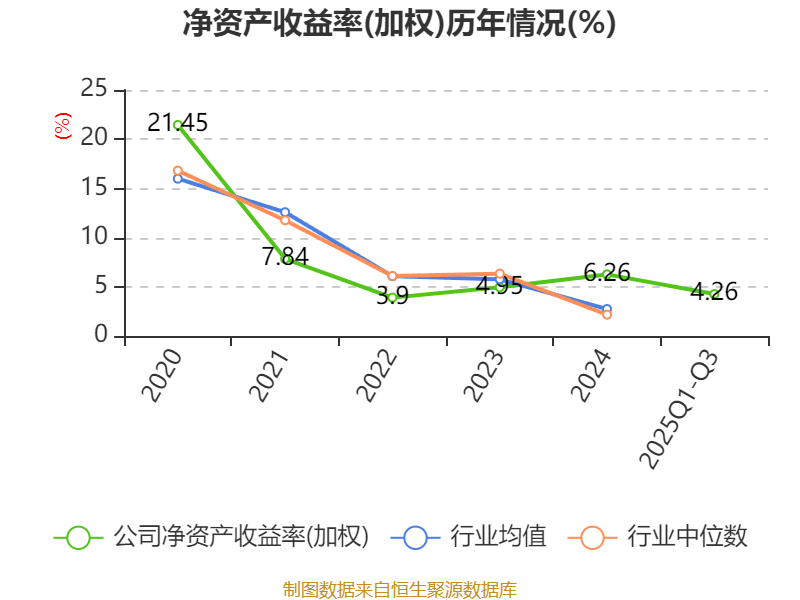 盈利能力方面, 2025年前三季度公司加权平均净资产收益率为4.26%,同比下降0.84个百分点。公司2025年前三季度投入资本回报率为3.52%,较上年同期下降0.86个百分点。