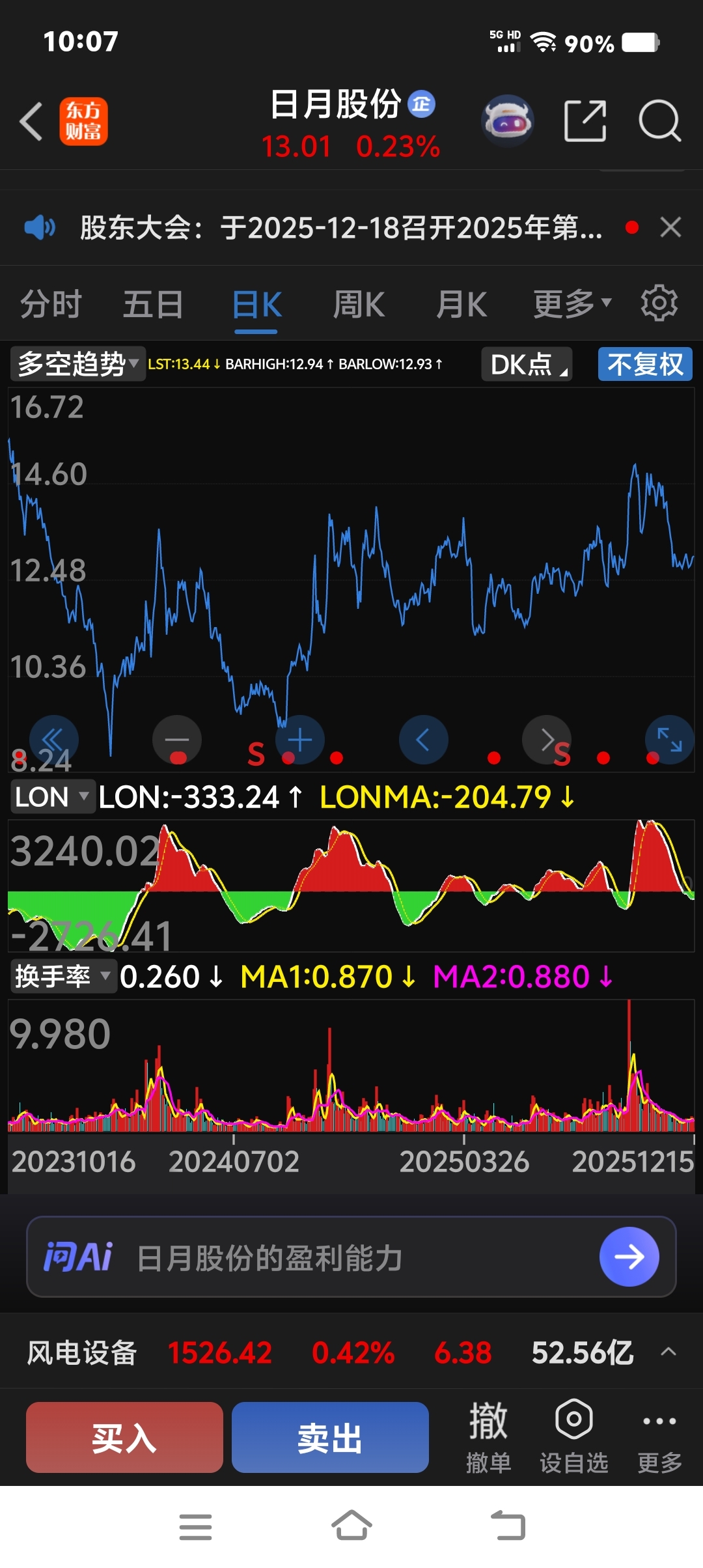 $日月股份(SH603218)$ 13.01开始介入,核电大发展,核废料处理重要处理商,十分之二