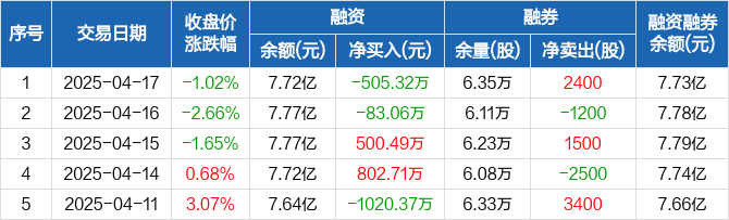 中贝通信:融资净偿还505.32万元,融资余额7.72亿元(04-17)