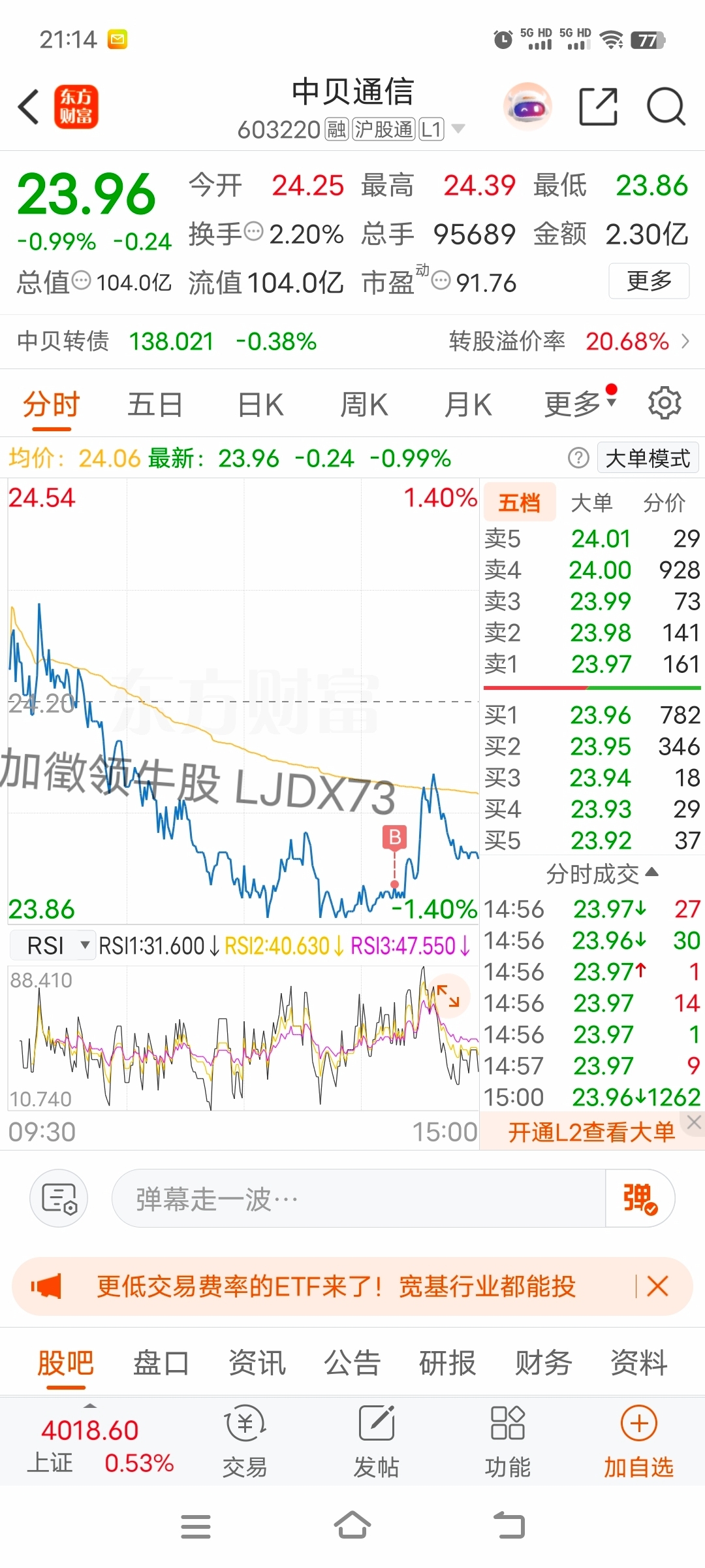$中贝通信(SH603220)$