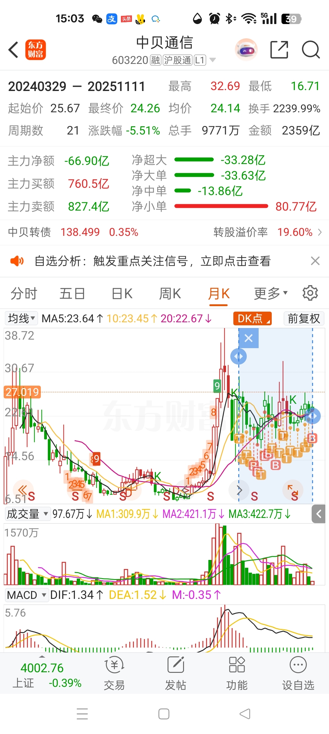 $中贝通信(SH603220)$