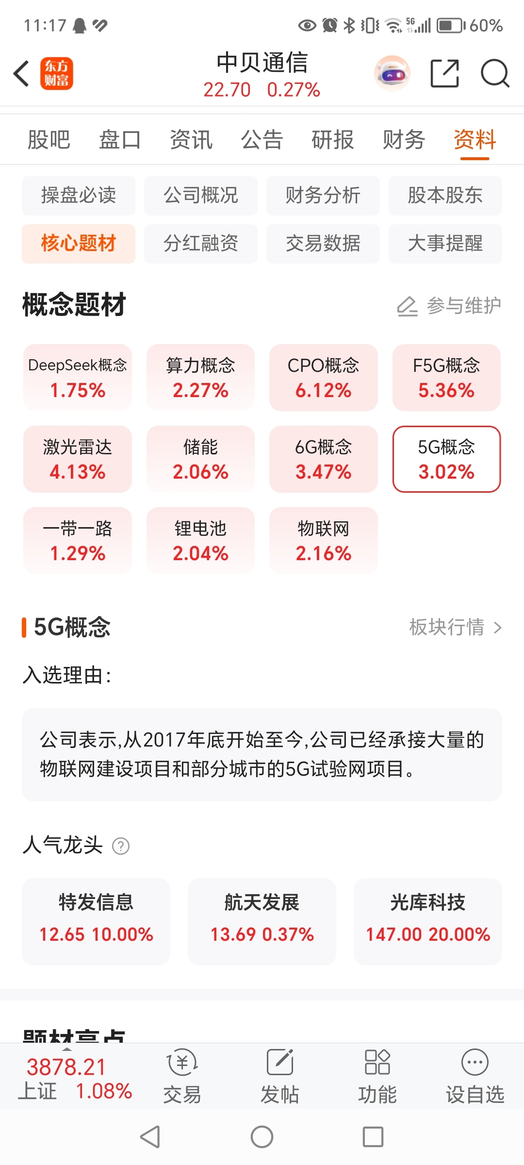 $中贝通信(SH603220)$