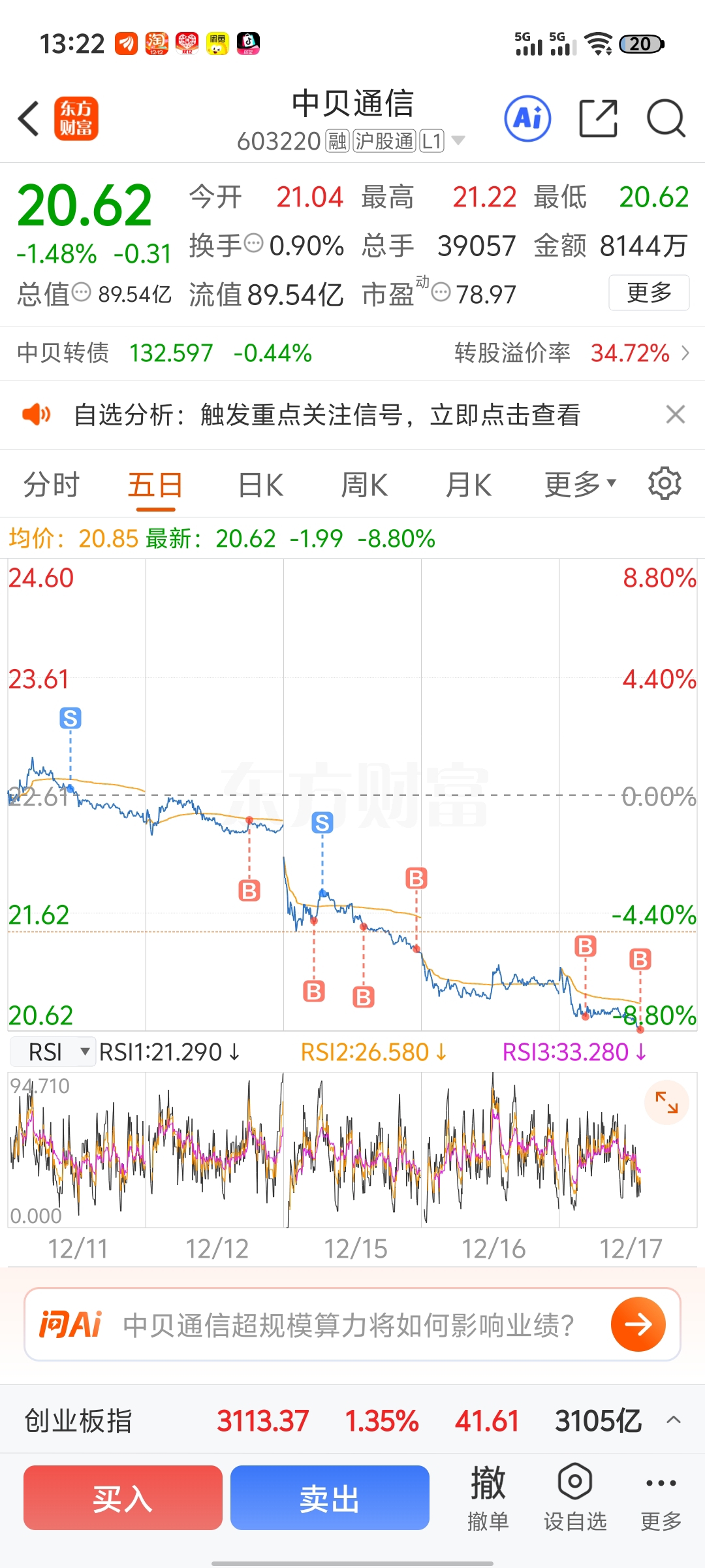 $中贝通信(SH603220)$ 真的 你亏死我吧