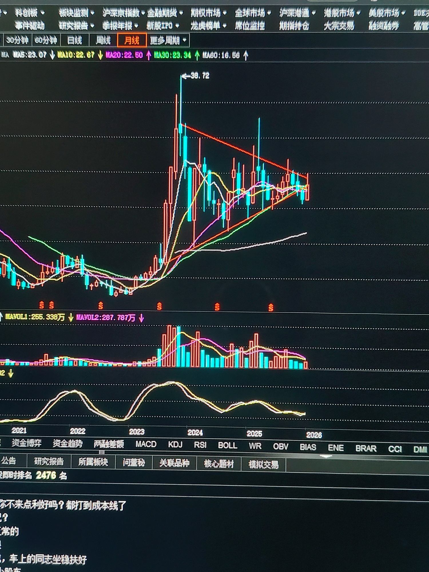$中贝通信(SH603220)$ 从月线图来看 这支股票的走势已经非常清晰了,这仅仅是一次弱势反抽而已,还在看多的朋友只是不敢承认自己做错了罢了!